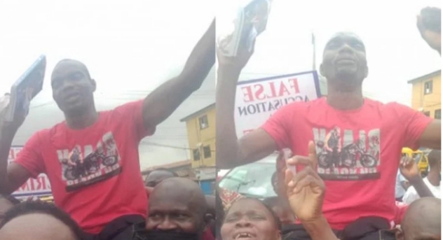 The placard-carrying protesters argued that Bakare should not be kept in prison since the accuser failed to produce the victim for forensic tests or provide evidence.