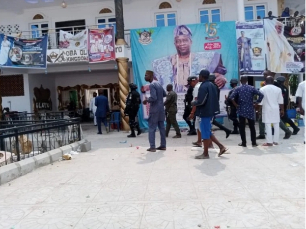 Vehicles belonging to the monarch were destroyed, while some shops in the area were burnt.
