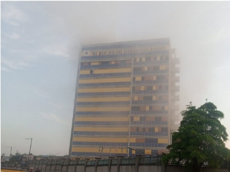 Smoke was earlier seen oozing at the top of the high-rise building as the fire was burning within its office rooms.