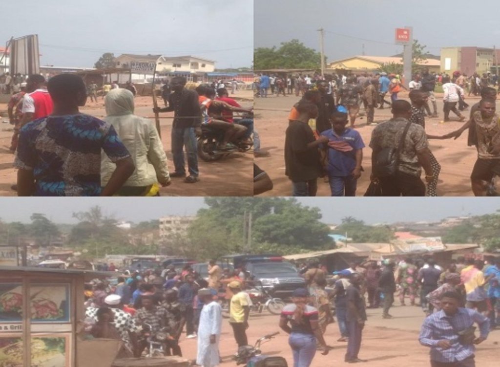 The situation disrupted vehicular movement as motorists and pedestrians ran off the road in safe directions to avoid the protesters.