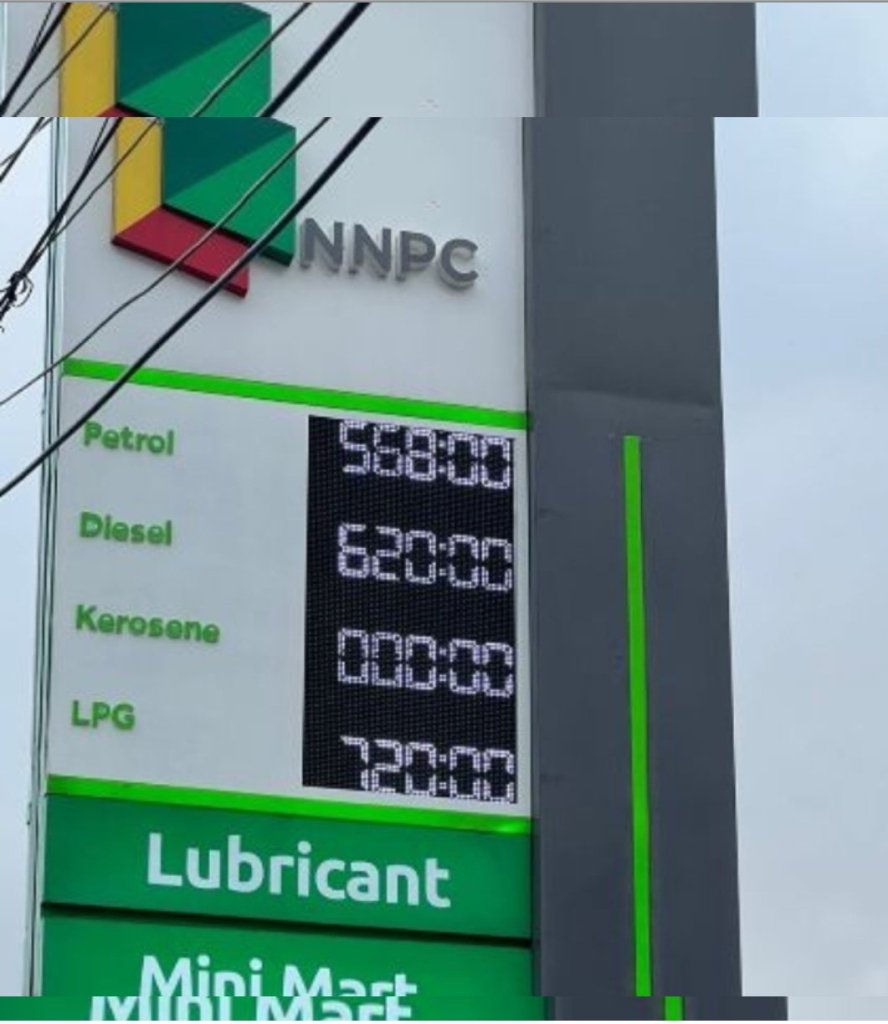 In the Lagos area, NNPC petrol station has adjusted its pump price to show ₦568 per litre.