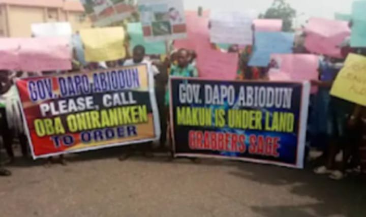 It was reported that Oba Adewale Adeniji, the Oniraniken of Iraniken, was said to have allegedly sponsored some people who have laid siege in some villages within Makun Community parading a purported court judgment which was alien to the original owners of the villages who were brutalized and forcefully sent packing from their various villages for the fear of being attacked but vehemently protested the criminal occupation of their villages at the Akarigbo of Remo’s Palace and the office of the Executive Governor of Ogun State at Oke-Mosan, Abeokuta.