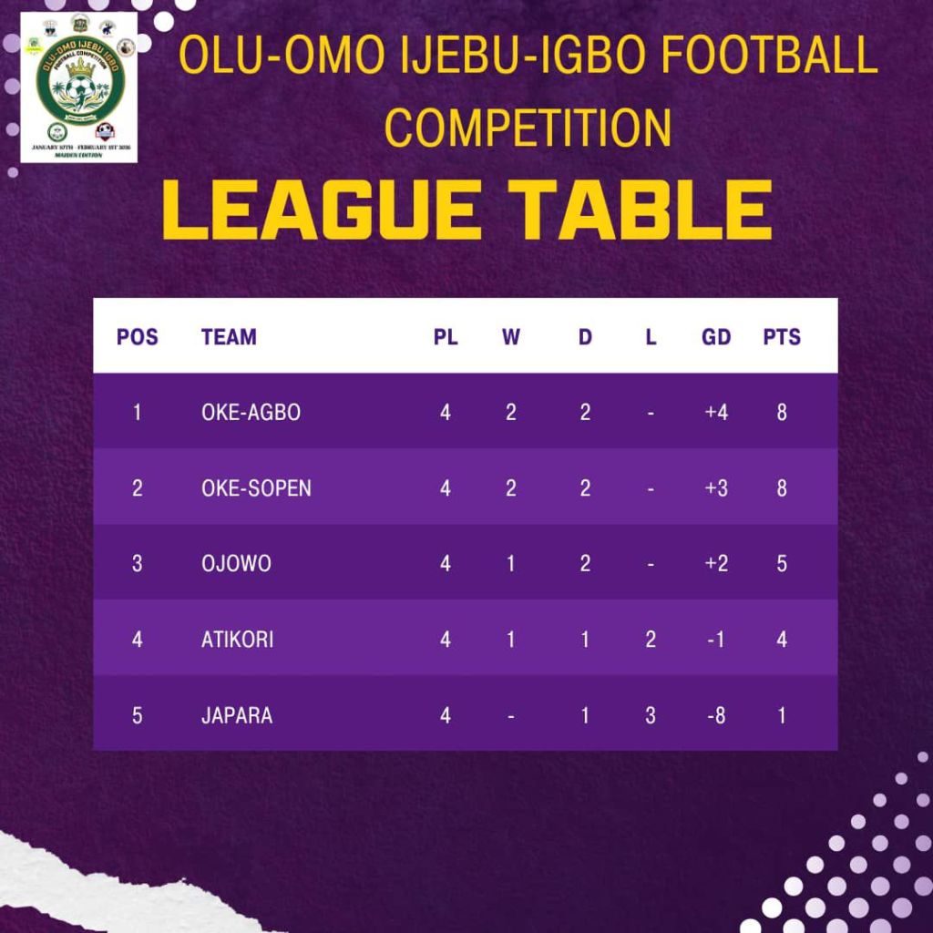 Oke Agbo, Oke Sopen, Ojowo and Atikori emerged as the top performers after an action-packed group phase that thrilled football fans across Ijebu Igbo and its environs.
